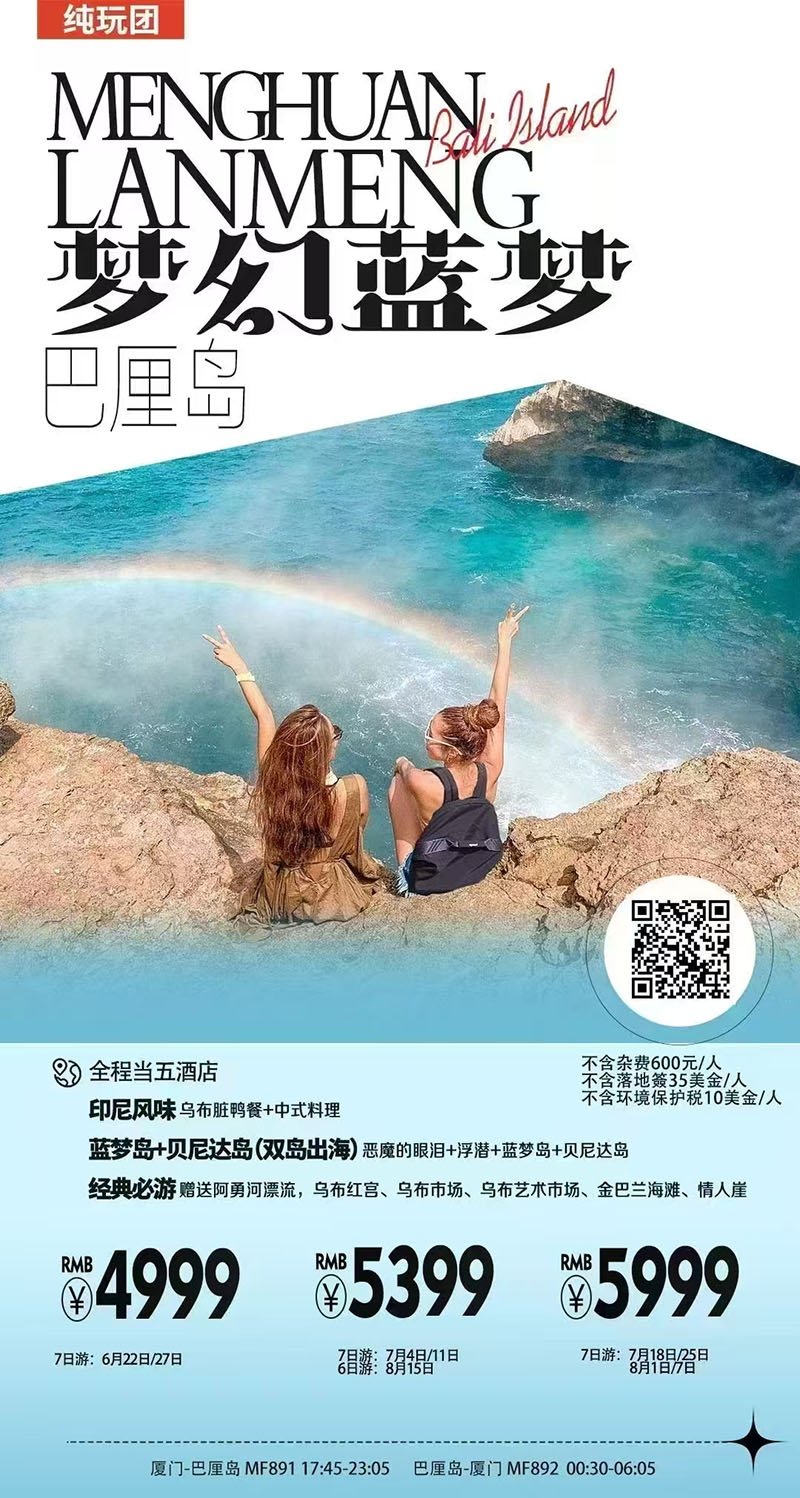 【暑期•巴厘岛】梦幻蓝梦巴厘岛6天4晚